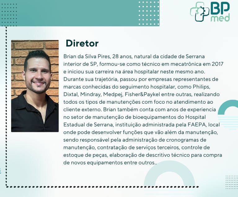 Durante anos atuando na área técnica, Brian percebeu que muitos clientes enfrentavam dificuldades em gerir contratos e prazos com várias empresas diferentes, cada uma responsável por apenas um tipo de equipamento. Essa fragmentação gerava custos maiores, perda de tempo e falta de padronização na qualidade dos serviços. Com isso, nasceu a BPMed — uma empresa criada para simplificar a rotina dos profissionais e instituições de saúde, oferecendo soluções integradas de manutenção preventiva e corretiva.